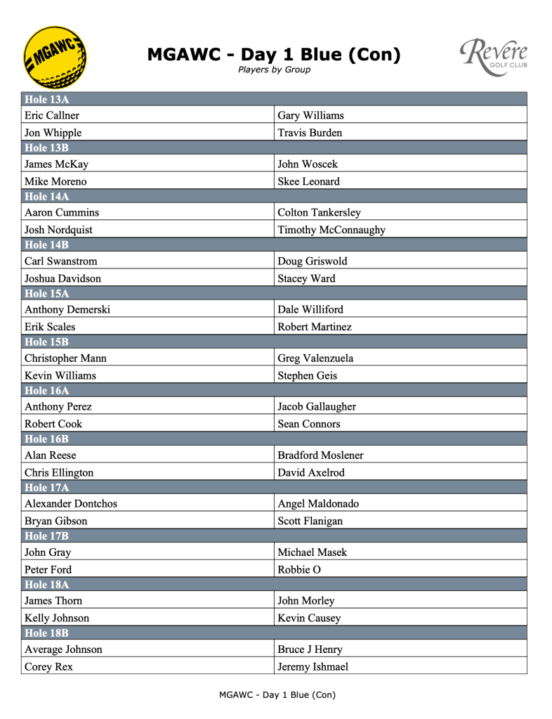 If you do leave your clubs, you are leaving them at your own risk. If they disappear or you don’t show up the last day to take them home, the MGA is not responsible. We’ve never had any issues in the past at Revere, but consider yourself warned.