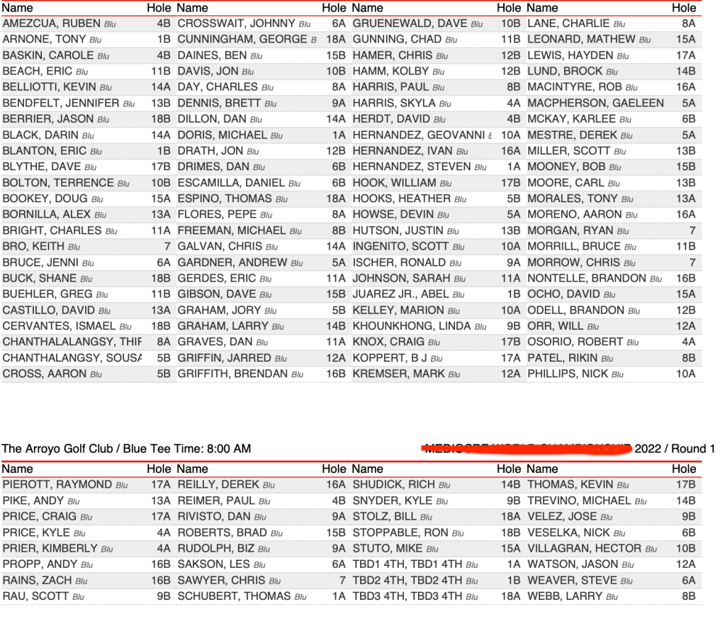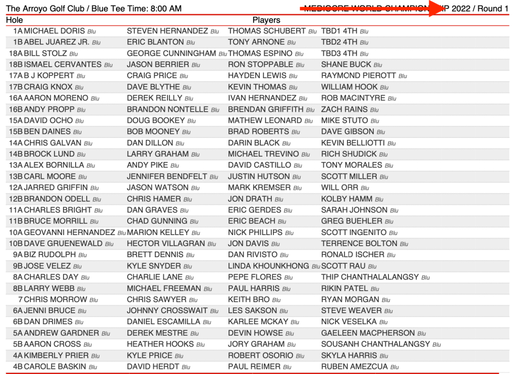 The pairings will be on the carts and there will be course staff to help you to your cart, but you can also check them out at the bottom of this page (they are posted as soon as El Presidente gets them).