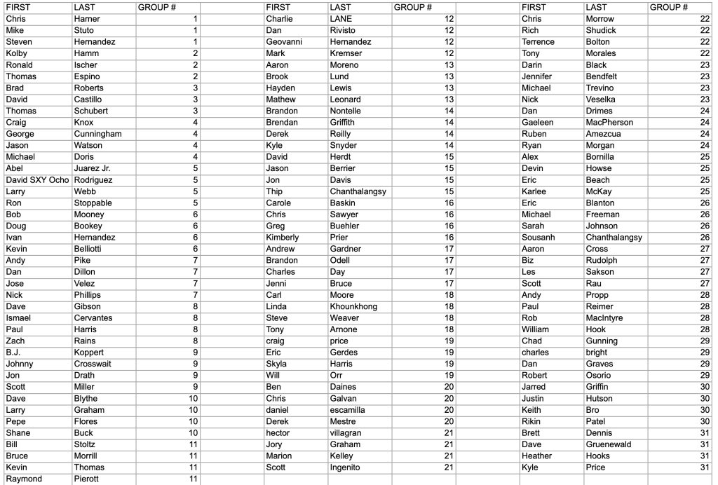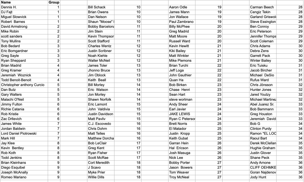 The top half of each field is based on finishing order, while the bottom half has been reshuffled using a random number generator. It didn’t seem like a great idea for pace-of-play-wise to pair all the highest stroke-takers together.