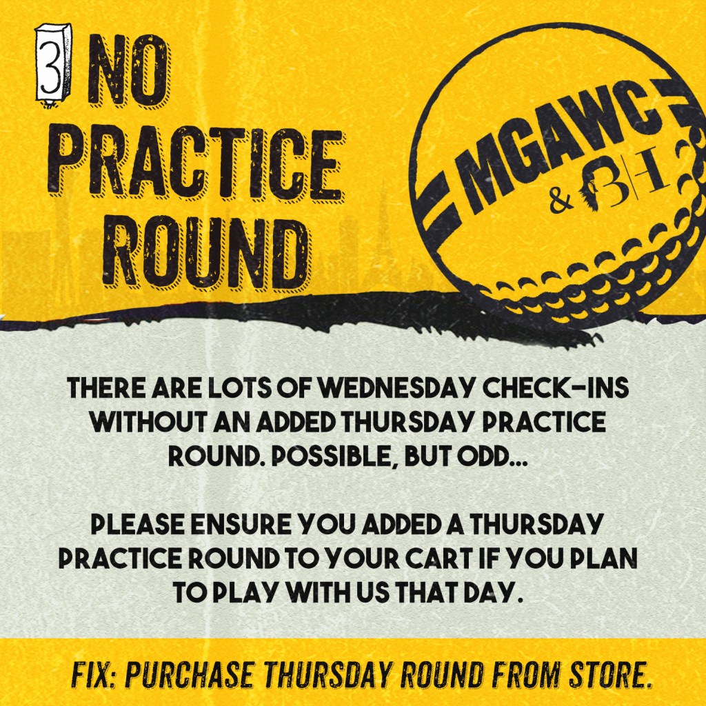 We changed the way packages are booked this year and we’re a bit paranoid some people might have missed that. It used to be, if you booked a Wednesday check-in, you always got a Thursday practice round with that package. But this year, you need to manually add that Thursday practice round after picking your Wednesday check-in.